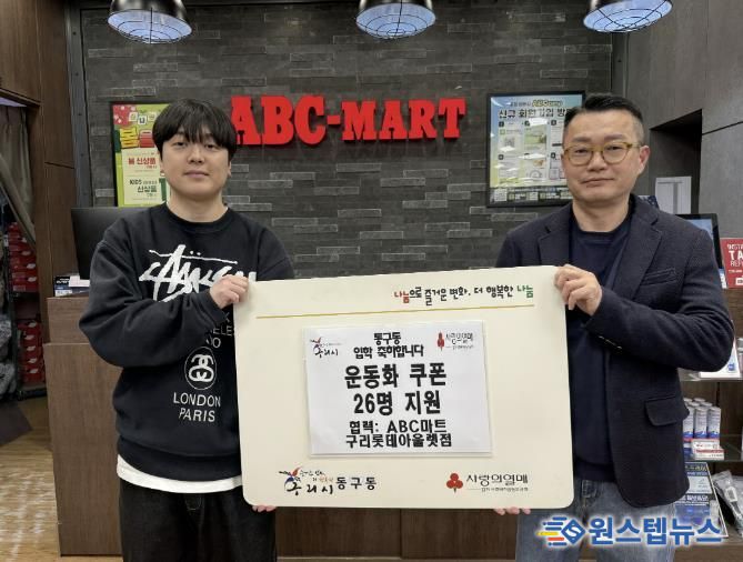 동구동 지정 기탁 후원금으로 추진되는 이번 사업은 ABC마트 구리롯데아울렛점과 협력해 2026년 입학하는 저소득층 초·중·고 신입생 26명에게 9만 원 상당의 운동화 구매 쿠폰을 지원한다. 대상 아동·청소년은 매장을 방문해 원하는 신발을 직접 고르며 새로운 출발을 준비할 수 있도록 했다.