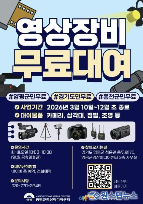 원스텝뉴스 이병희 기자 | 양평군은 2026년 ‘시청자미디어재단 경기센터 장비 지원 사업’ 공모에 2024년과 2025년에 이어 3년 연속 선정돼 올해 12월까지 미디어 장비 대여 서비스를 운영한다고 밝혔다.