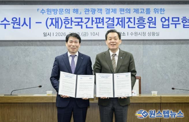 수원시는 13일 시청 상황실에서 (재)한국간편결제진흥원과 업무협약을 체결하고, 외국인 관광객의 결제 편의성을 높이기 위해 협력하기로 했다.