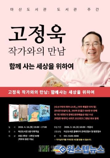 원스텝뉴스 천규영 기자 | 김포시 마산도서관은 도서관 주간(4월 12일~18일)을 맞아 오는 4월 18일 오후 3시 ‘고정욱 작가와의 만남: 함께 사는 세상을 위하여’를 개최한다고 밝혔다.