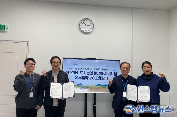 원스텝뉴스 이병희 기자 | 재단법인 군포시청소년재단은 3월 11일 경기도농수산진흥원과 '2026년 도시농업 공동체 활성화 지원사업(청소년 옥상텃밭)의 안정적 추진을 위해 업무협약을 재체결했다.