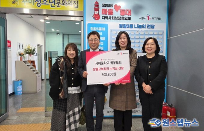 원스텝뉴스 이병희 기자 | 서해중학교 학부모회는 지난 3월 13일 정왕3동 저소득층을 돕기 위해 ‘알뜰 교복 장터’ 운영 수익금 30만8천800원을 기탁하며 지역사회에 온정을 전했다.