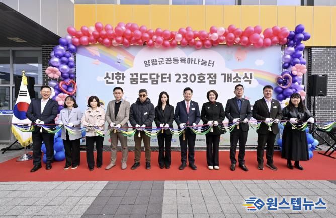 원스텝뉴스 천규영 기자 | 양평군은 지난 14일 사회복지법인 아이들과미래재단, 신한금융 희망재단과 함께 용문공동육아나눔터 ‘신한 꿈도담터 230호점’을 개소했다고 밝혔다.