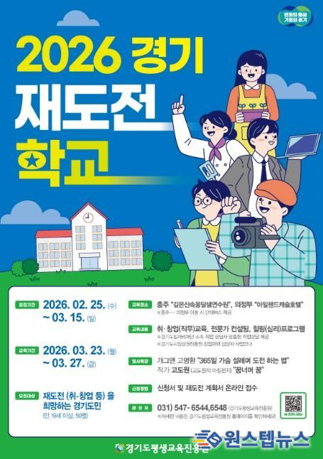 원스텝뉴스 이병희 기자 | 경기도와 경기도평생교육진흥원은 취업이나 창업 실패를 경험한 도민의 재도약을 지원하기 위해 지난달 25일부터 이번 달 15일까지 ‘2026년 경기 재도전학교’ 제1기 참가자 모집을 완료했다.