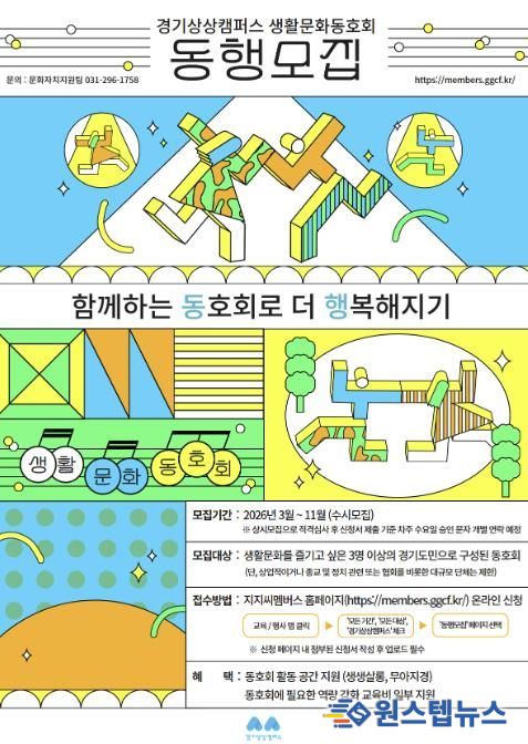 원스텝뉴스 이병희 기자 | 경기문화재단 경기상상캠퍼스가 생활문화를 함께 즐기고 싶은 경기도민을 대상으로 2026년 신규 생활문화동호회 ‘동행(함께하는 동호회로 더 행복해지기)’을 모집한다.