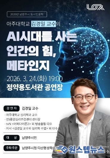 원스텝뉴스 천규영 기자 | 남양주시는 오는 3월 24일 정약용도서관 공연장에서 시민 300여 명을 대상으로 도시인문학 특강 ‘AI시대를 사는 인간의 힘, 메타인지’를 개최한다고 17일 밝혔다.