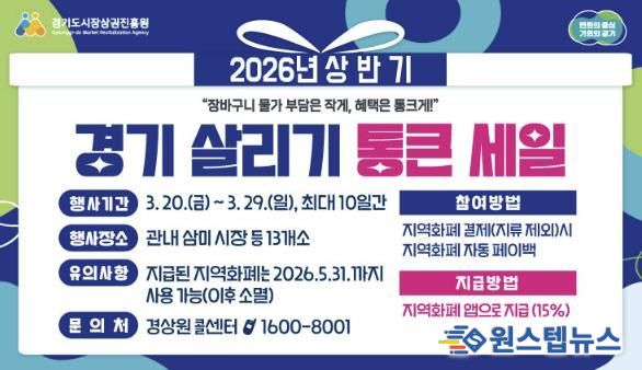 원스텝뉴스 이병희 기자 | 시흥시는 고물가로 위축된 민생경제에 활력을 불어넣고 소상공인의 매출 증대를 돕기 위해 오는 3월 20일부터 29일까지 관내 전역에서 ‘2026년 상반기 경기 살리기 통큰 세일’을 개최한다.