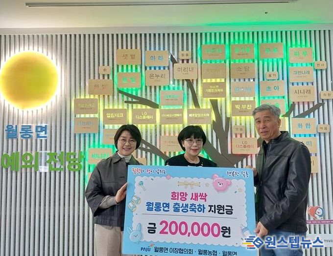 ‘희망 새싹’출생 축하 지원금은 월롱면에서 태어나 현재 월롱면에 거주 중인 출생아 가정을 대상으로, 아이의 탄생을 축하하는 의미를 담아 월롱면 이장협의회가 마련한 지원 사업이다.