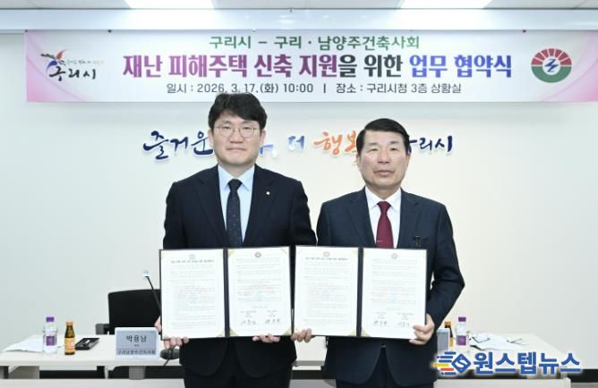 원스텝뉴스 이병희 기자 | 구리시는 지난 17일 구리·남양주건축사회와 재난 피해 주민의 신속한 주거 안정을 지원하기 위한 '재난 피해 주택 신축지원 업무협약'을 체결했다.