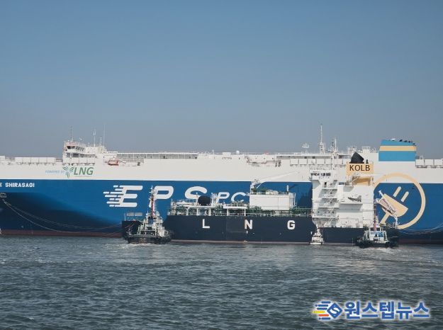 원스텝뉴스 이병희 기자 | 경기평택항만공사는 18일 평택국제자동차부두에서 개항 이래 최초로 대형 자동차운반선에 1,290톤(Metric Ton) 규모의 친환경 액화천연가스(LNG)를 성공적으로 급유했다고 밝혔다. 이번 첫 시범 운영 성공으로 평택항은 본격적인 상업용 친환경 선박 연료 공급(벙커링) 기반을 마련하며 국제 항만 경쟁력을 한층 끌어올렸다.