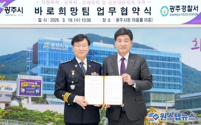 원스텝뉴스 이병희 기자 | 광주시는 18일 시청 이음홀에서 광주경찰서와 가정폭력·성폭력·교제 폭력 등 폭력 피해자에 대한 공동 대응을 위해 ‘바로희망팀’ 업무협약을 체결했다.