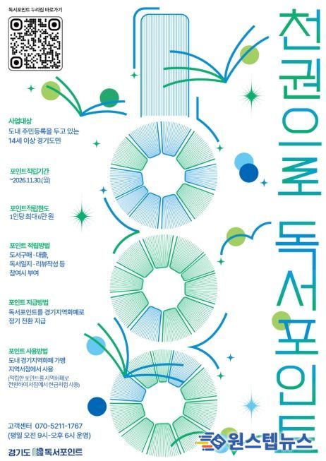 윤명희 경기도서관장은 “책을 읽는 경험이 생활 속 혜택으로 이어지도록 경기도 대표 독서문화 프로젝트인 ‘천권으로’와 연계해 독서포인트 사업을 설계했다”면서 “경기도민이 책과 함께 걷는 평생 독서의 길을 함께 하길 바란다”고 말했다.