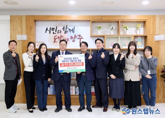 원스텝뉴스 이병희 기자 | 양주시는 3월 18일 오후 NH농협 양주시지부로부터 '2025년 제휴카드 사용을 통해 적립된 기금 97,925천원을 전달받았다고 밝혔다.