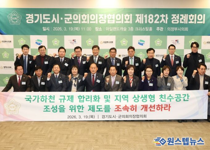 원스텝뉴스 이병희 기자 | 경기도시군의회의장협의회 회장인 동두천시의회 김승호 의장이 제안한 '국가하천 규제 합리화 및 지역 상생형 친수공간 조성을 위한 제도 개선 촉구 건의안'이 19일 의정부 아일랜드캐슬에서 열린 제182차 정례회의에서 만장일치로 채택됐다.