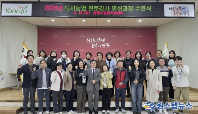 원스텝뉴스 이병희 기자 | 양주시가 지난 19일 양주시농업기술센터 대회의실에서 ‘2026년 도시농업 전문강사 양성과정’ 수료식을 개최했다.
