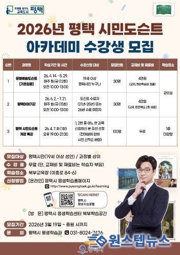 원스텝뉴스 천규영 기자 | 평택시는 2026년 ‘평택 시민도슨트 아카데미’ 학습자를 3월 19일부터 4월 6일까지 모집한다고 밝혔다.