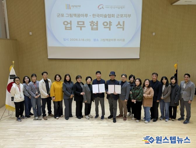 원스텝뉴스 이병희 기자 | 군포시 그림책꿈마루는 지난 3월 18일 그림책꿈마루 아리움에서 한국미술협회 군포지부와 지역 문화예술 활성화 및 시민 문화향유 기회 확대를 위한 업무협약(MOU)을 체결했다.