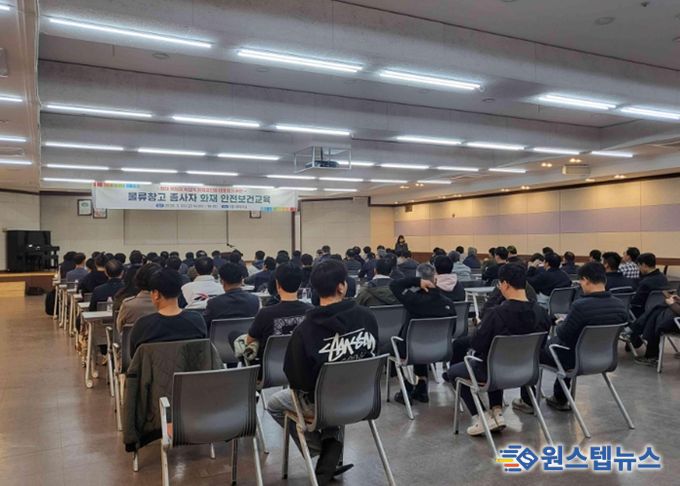 안전보건공단에서 강의를 맡았으며, 주요 교육 내용은 ▲최근 물류창고 화재 사례 분석 ▲화재 예방을 위한 작업장 관리 요령 ▲사업장 사고위험요인 ▲종사자 중심 안전관리 체계 구축 등으로 구성됐다.