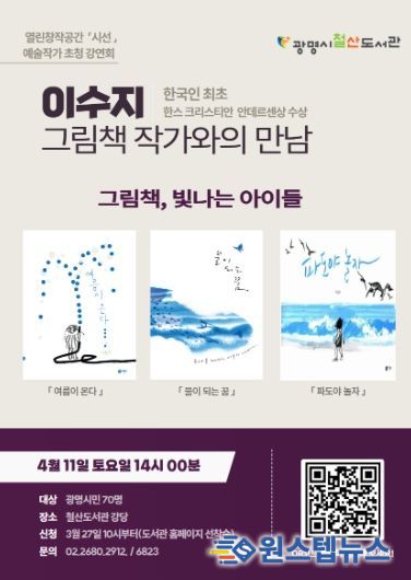 원스텝뉴스 천규영 기자 | 광명시 철산도서관은 시민들을 위한 열린창작공간 ‘시선’의 개소를 기념해 이수지 그림책 작가 초청 강연회를 개최한다.