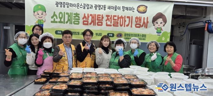 이번 행사는 지역사회 나눔에 앞장서는 광명중앙라이온스클럽이 삼계탕용 닭 200마리를 후원하고, 새마을부녀회가 자체 수익금(김 판매, 자선모금 등)으로 부재료를 마련했다.