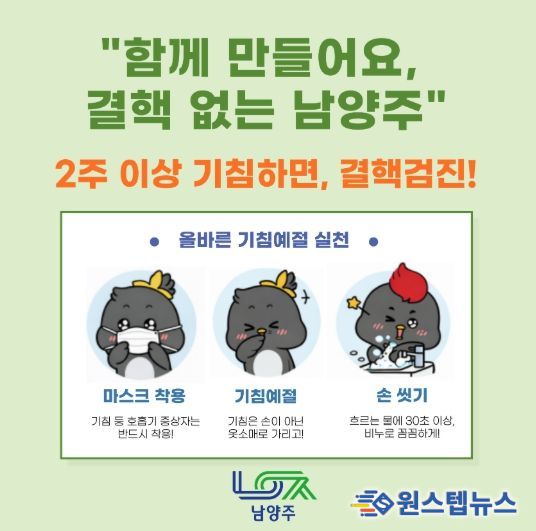한편 남양주시는 결핵 환자 관리, 접촉자 조사, 취약계층 검진, 집단시설 종사자 결핵검진 관리 등 다양한 사업을 통해 지역사회 결핵 확산 방지와 시민 건강 보호에 힘쓰고 있다.
