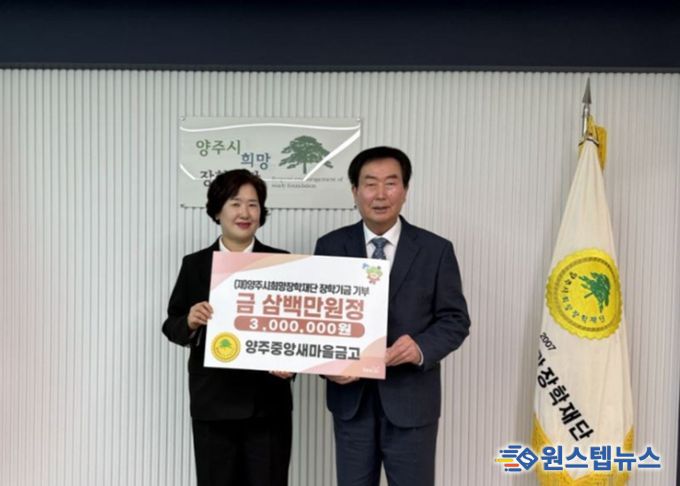 원스텝뉴스 이병희 기자 | 양주중앙새마을금고는 23일 양주시희망장학재단에 장학기금 300만원을 기탁했다.