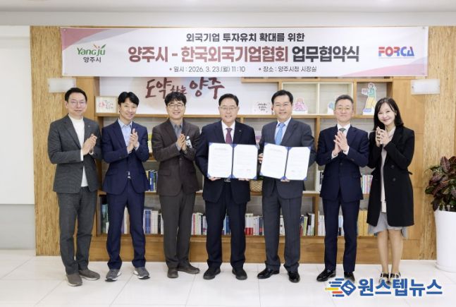 원스텝뉴스 이병희 기자 | 양주시가 지난 23일 시장실에서 외국기업 투자유치 확대를 위해 양주시와 한국외국기업협회(회장 문고영) 간 업무협약을 체결했다.