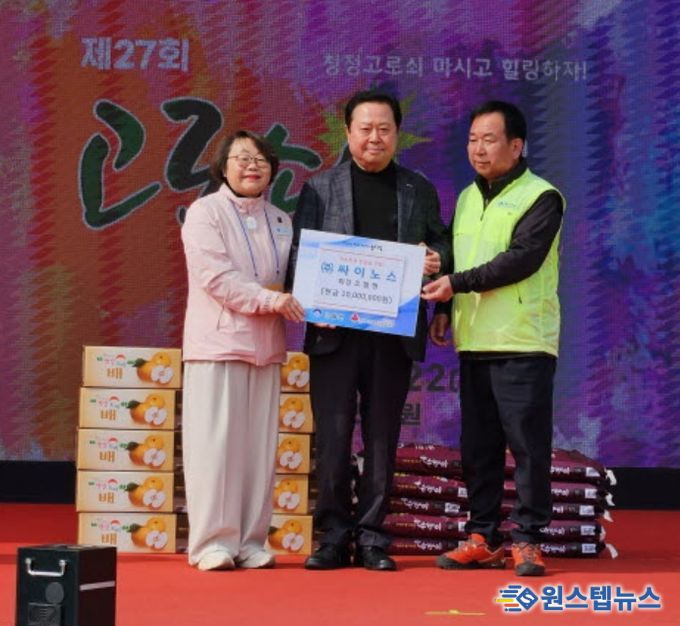 원스텝뉴스 이병희 기자 | 양평군 단월면은 지난 21일과 22일, 축제 기간 중 단월레포츠공원에서 열린 기념행사에서 ㈜싸이노스 조철형 회장이 이웃돕기 성금 1,000만 원을 전달했다고 밝혔다.