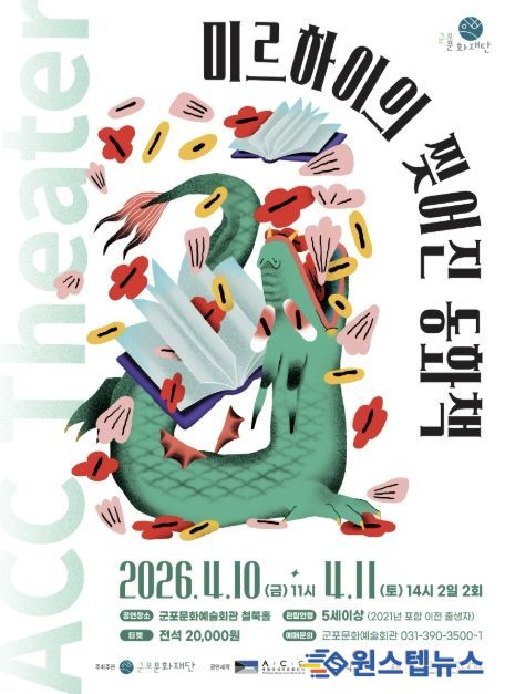 원스텝뉴스 천규영 기자 | 군포문화재단은 어린이와 가족이 함께 관람할 수 있는 공연 '미르하이의 찢어진 동화책'을 4월 10일~11일 군포문화예술회관 철쭉홀에서 개최한다고 밝혔다. 이번 공연은 2026 국립아시아문화전당재단 어린이 공연 유통 공모사업의 일환으로, 국립아시아문화전당(ACC) 창·제작 어린이 공연을 지역에 소개하기 위해 마련됐다.