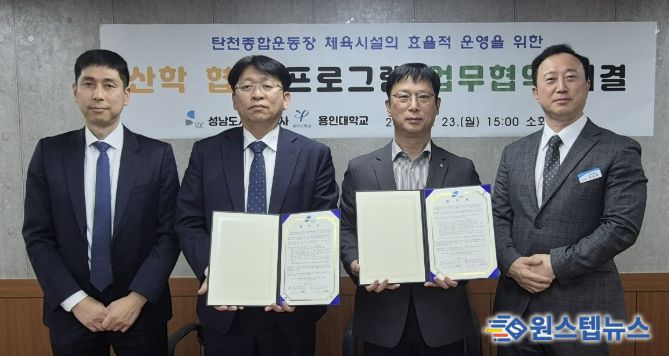 원스텝뉴스 이병희 기자 | 성남도시개발공사 탄천종합운동장은 지난 23일 용인대학교 체육과학대학과 공공체육 활성화 및 전문인력 양성을 위한 업무협약(MOU)을 체결했다고 24일 밝혔다.