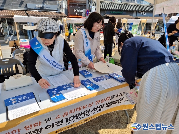 시민협의회는 이날 부스에서 수원 군공항 이전 필요성과 경기국제공항 신설에 따른 지역 경제 파급 효과를 설명했다. 또한 고도 제한 완화, 소음 피해 보상 현실화 등 관련 제도와 추진 현황을 상세히 알리며 ‘10만 서명운동 캠페인’의 취지를 소개하고 시민들과 소통했다.
