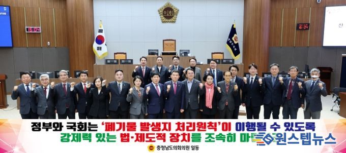 이에 충남도의회는 ▲발생지 처리 원칙의 실질적 이행을 위한 강제력 있는 법·제도적 장치 마련 ▲수도권 폐기물의 지방 이전 구조 개선 및 폐기물 처리 공공성 강화 법률 추진 ▲국가 책임 아래의 공공 폐기물 처리시설 확충및 주민 지원·상생 제도 법제화 등을 정부와 국회에 촉구했다.