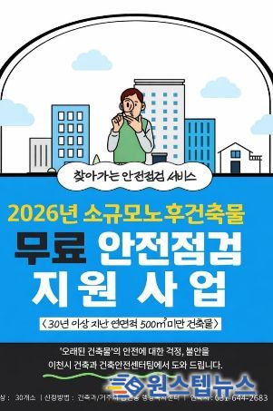 원스텝뉴스 이병희 기자 | 이천시는 건축물 노후화로 인한 안전사고를 예방하고 시민 안전을 강화하기 위해 ‘2026년 찾아가는 소규모 노후건축물 안전점검 지원사업’을 추진한다고 밝혔다.