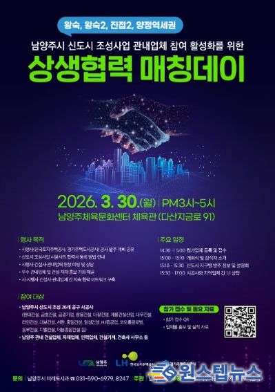 시 관계자는 “이번 자리를 통해 시행사·건설사와 관내 기업이 서로를 신뢰할 수 있는 파트너로 인식하는 자리가 되길 바란다”며 “남양주가 성장하는 만큼 우리 지역 기업도 함께 성장할 수 있도록 행정적 가교 역할을 끝까지 수행하겠다”고 전했다.