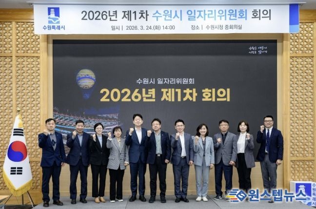 수원시는 24일 중회의실에서 김현수 제1부시장 주재로 ‘2026년 수원시 일자리위원회 제1차 회의’를 열고, ‘2026년 일자리정책 추진계획(안)’을 심의·자문했다. 또 일자리위원회 위원 14명을 위촉했다.