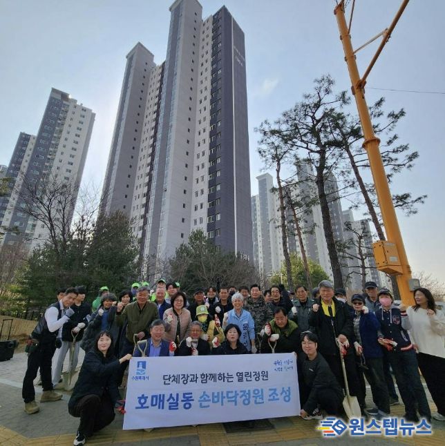 원스텝뉴스 이병희 기자 | 지난 24일, 수원시 권선구 호매실동은 쾌적한 마을 환경 조성과 도심 속 정원 문화 확산을 위해 아파트 단지 인근 유휴지에 ‘손바닥 정원’을 조성했다.