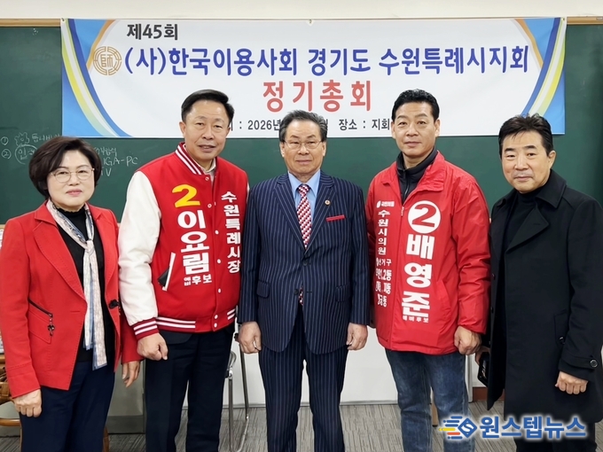 이요림 수원특례시장 예비후보가 24일 한국이용사회 수원특례시지회 제45회 2026년 정기총회에서 이용업 종사자들과 소통하는 시간을 가졌다.