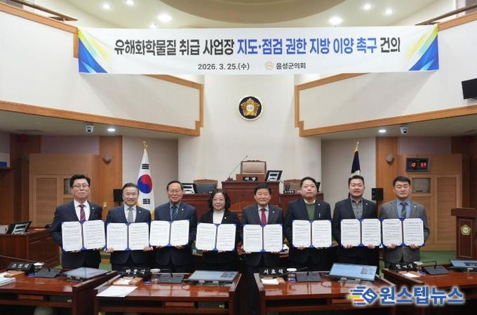 원스텝뉴스 이병희 기자 | 음성군의회는 3월 25일 제387회 임시회 제5차 본회의에서 ‘유해화학물질 취급 사업장 지도·점검 권한 지방 이양 촉구 건의문’을 채택하고, 군민의 생명과 안전을 지키기 위한 제도 개선을 정부와 국회에 촉구했다.