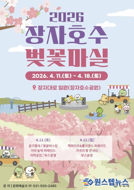 원스텝뉴스 천규영 기자 | 구리시는 오는 4월 11일부터 18일까지 8일간 장자대로 일원(장자호수공원)에서 ‘2026 장자호수 벚꽃마실’을 개최한다고 밝혔다.