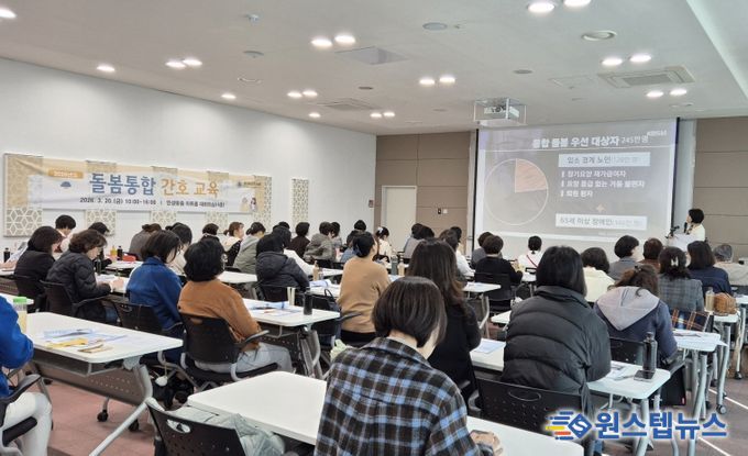 이번 교육은 돌봄통합지원법 시행을 앞두고 지역사회 기반 통합돌봄 체계 구축에 필요한 간호 인력의 전문성 강화를 위해 마련됐으며, 의료기관 근무 또는 미취업 간호사 등 60여 명이 참석해 높은 관심을 보였다.