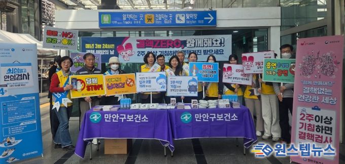 동안구보건소는 24일 범계역사 내에서 ‘기침=신호, 검진=보호, 치료=야호’ 등 다양한 슬로건을 내걸고 대시민 홍보를 펼쳤다. 보건소는 결핵 조기 발견의 중요성뿐만 아니라 에이즈 예방, 올바른 손 씻기, 심뇌혈관질환 관리, 헌혈 동참 등 다양한 감염병 및 만성질환 예방 정보를 통합적으로 안내했다.