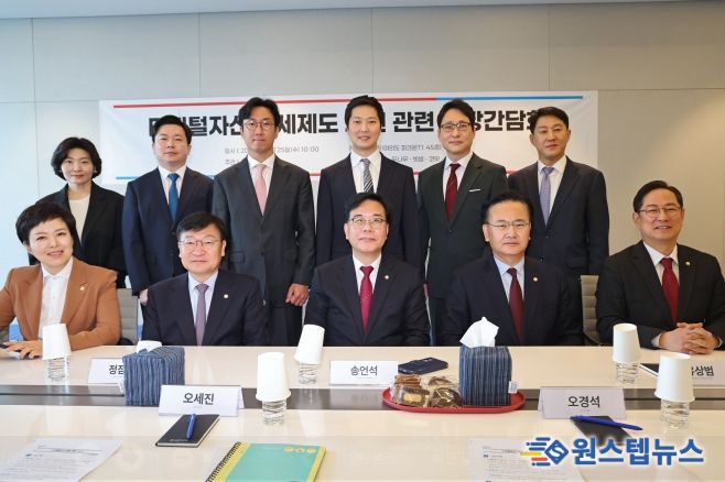 이날 간담회에는 정점식 정책위의장, 유상범 원내운영수석, 김은혜 원내정책수석, 박수영 국회 재정경제기획위원회 간사, 박충권 원내수석대변인, 최보윤 의원(디지털자산 밸류업 특위) 등이 참석했다.