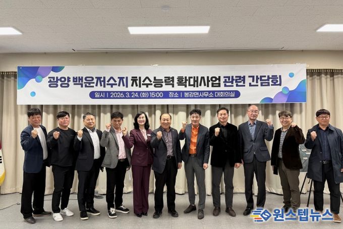 원스텝뉴스 이병희 기자 | 전라남도의회 강정일 의원(더불어민주당, 광양)이 지난 3월 24일 광양시 봉강면사무소 대회의실에서 ‘백운저수지 치수능력 확대사업’의 추진 방향을 점검하고 지역 주민들의 의견을 청취하기 위한 현장 간담회를 개최했다.