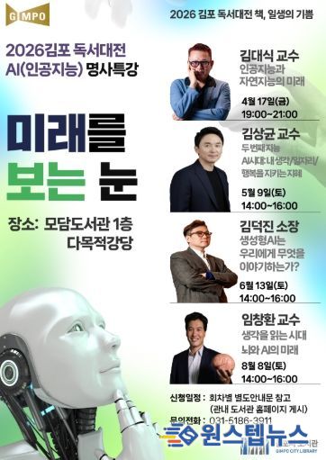 원스텝뉴스 천규영 기자 | 김포시는 ‘2026 김포 독서대전’의 일환으로 '미래를 보는 눈: 인공지능(AI) 명사 특강'을 오는 4월 17일부터 8월 8일까지 모담도서관에서 4회차로 운영한다.