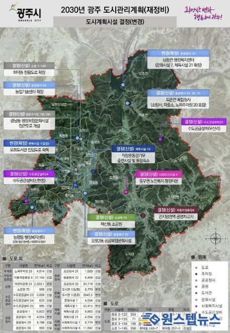 원스텝뉴스 이병희 기자 | 광주시는 효율적인 도시공간 관리를 위해 ‘2030년 광주 도시관리계획 재정비(도시계획시설) 결정(변경)’ 사항을 고시했다고 26일 밝혔다.