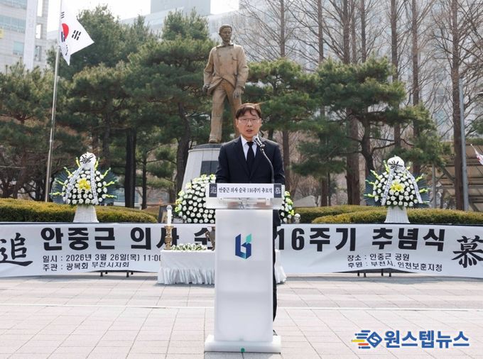 이어 “안중근 의사가 꿈꾼 세상은 주권 회복을 넘어 서로 존중하며 평화롭게 공존하는 사회였다”며 “갈등보다 화합을, 개인의 이익보다 공동체의 안녕을 먼저 생각한 그 정신이 부천시 곳곳에서도 살아 숨쉬기를 바란다”고 강조했다.