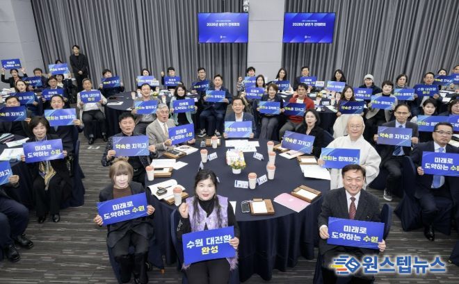 수원시 새로운수원위원회는 26일 시청 중회의실에서 2026년 상반기 전체회의를 열고, 공약 사업 평가 결과를 발표했다.