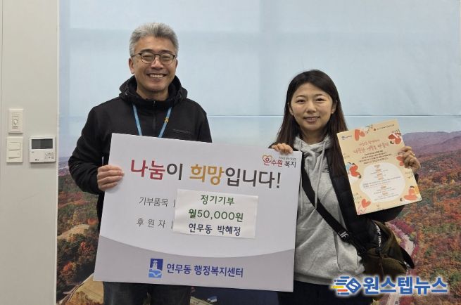 중국 국적의 박혜정님은 지난 15년간 연무동에 거주하며 동네에 대한 깊은 애정을 키워왔다. 그는 “이곳은 나와 우리 가족에게 단순한 타국이 아니라 삶의 터전이자 두 번째 고향”이라며, “그동안 동네에서 받은 따뜻한 이웃의 정을 이제는 어려운 분들에게 나누고 싶어 매월 5만 원의 정기후원을 결심했다”고 전했다.