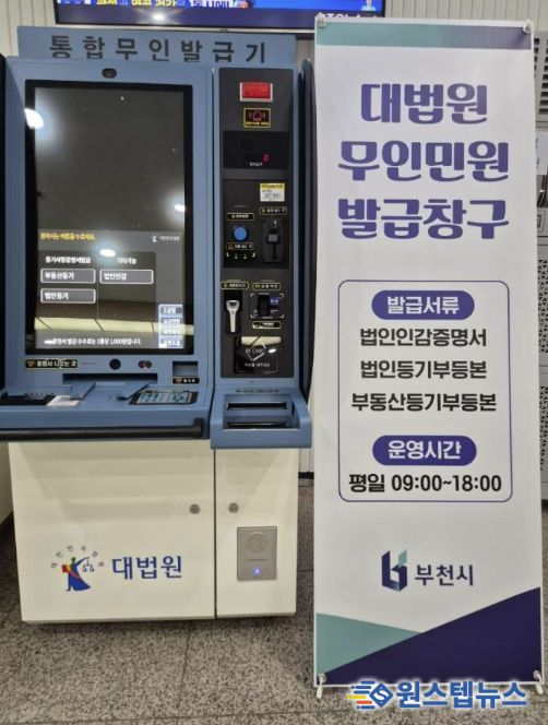 원스텝뉴스 이병희 기자 | 부천시는 3월 27일부터 시청 민원실에 대법원 통합무인발급기를 설치하고 운영을 시작한다.