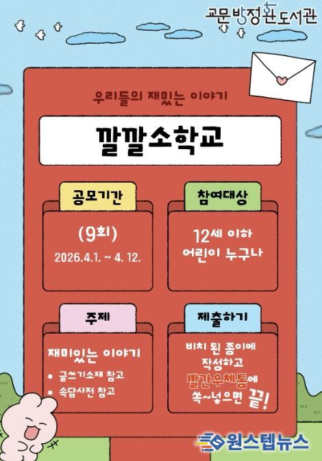 참여 어린이들은 도서관 내 ‘깔깔코너’에서 글쓰기 주제를 선택한 뒤, 비치된 사전 등을 활용해 이야기를 작성하고 이를 우체통에 넣어 제출하면 된다. 제출된 글은 만화 콘텐츠로 제작되어 어린이들에게 창작의 즐거움과 성취감을 제공할 예정이다.
